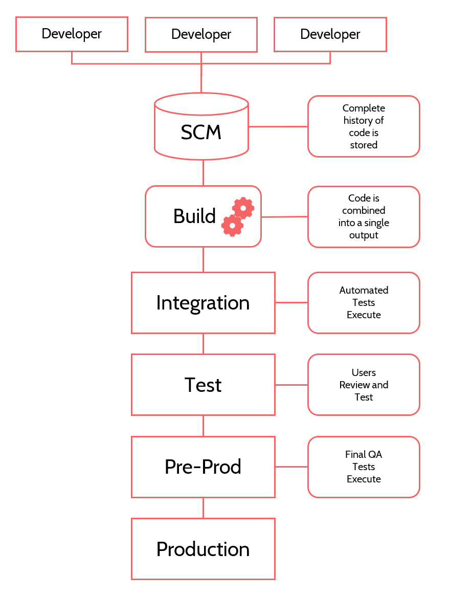 - When code is submitted to an SCM, it will often trigger a script that automatically builds and deploys it to an integration environment – essentially, the working copy of the site. Just by submitting new code, an entire build of the website is deleted and rebuilt with the latest submitted code from everyone on the team. This is a concept known as continuous integration (CI) or continuous deployment (CD). If you have lots of developers writing and submitting code, your integration environment might get destroyed and rebuilt dozens of times a day. Developers can submit code, wait a minute for the build, then go check to make sure all their stuff worked with everyone else’s stuff. There also might be some automatic tests that run after building to check for problems6 .